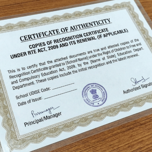 COPIES OF RECOGNITION CERTIFICATE UNDER RTE ACT. 2009. AND ITS RENEWAL F APPLICABLE