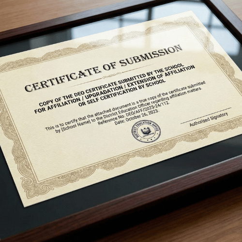 COPY OF THE DEO CERTIFICATE SUBMITTED BY THE SCHOOL FOR AFFILIATION / UPGRADATION / EXTENSION OF AFFILIATIONOR SELF CERTIFICATION BY SCHOOL