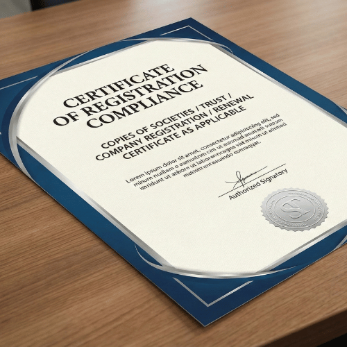COPIES OF SOCIETIES / TRUST / COMPANY REGISTRATION / RENEWAL CERTIFICATE AS APPLICABLE